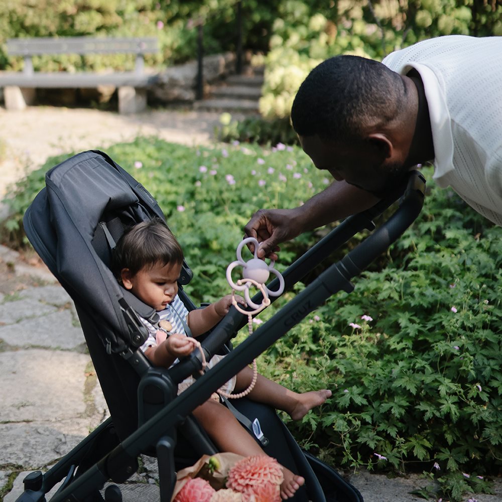 The Rattle Teether is made from non-toxic food-grade silicone which is perfectly safe to chew on.