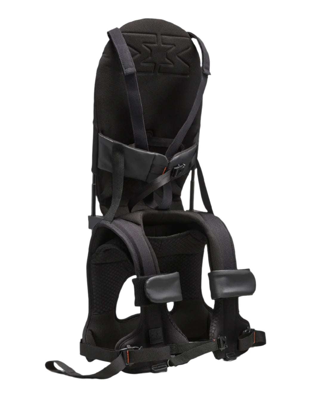 While discovering the world, your child sits safely on your shoulders secured by a waist belt and leg straps. A harness with shoulder straps is included to give extra upper body support for the smallest kids (6-10 months). An extendable padded seat provides maximum comfort for the child. The supportive backrest is designed to help the child sit up straight while sitting in the carrier on your shoulders.