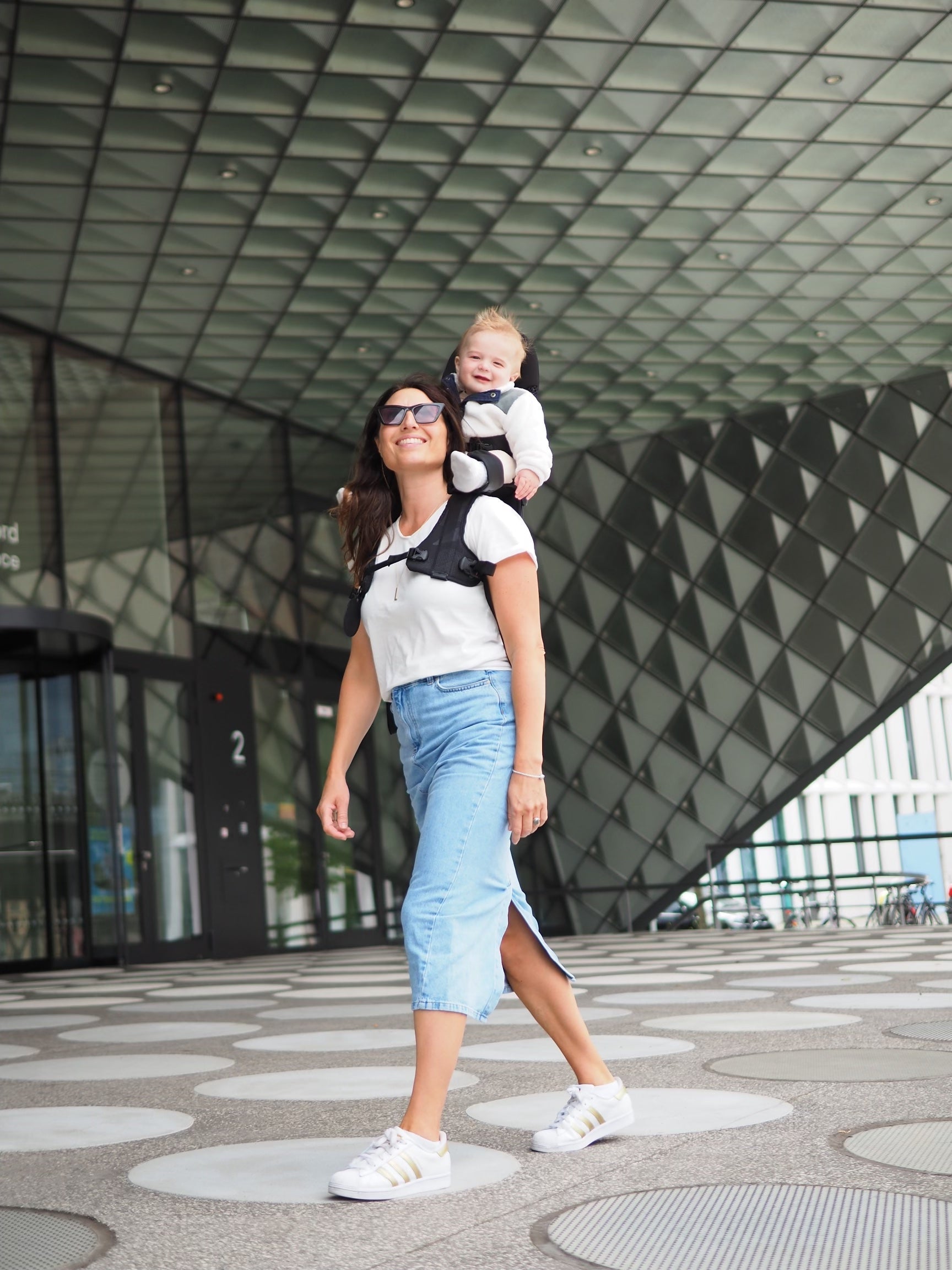 Comfort for the parent is provided by placing the child on a specially designed seat, hovering just above your shoulders, relieving your neck and shoulders from direct stress. The weight of the child is evenly distributed through the carriers’ body, which enables longer walks in comfort and style, with happy kids.