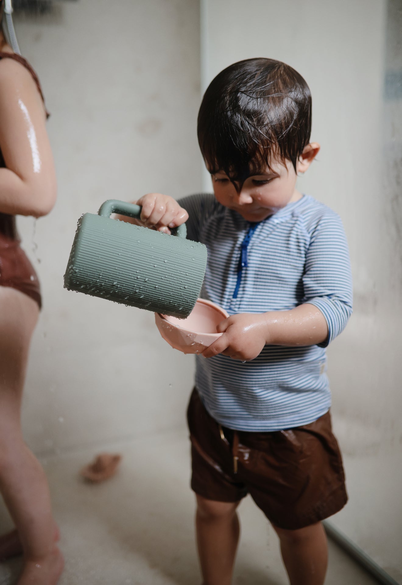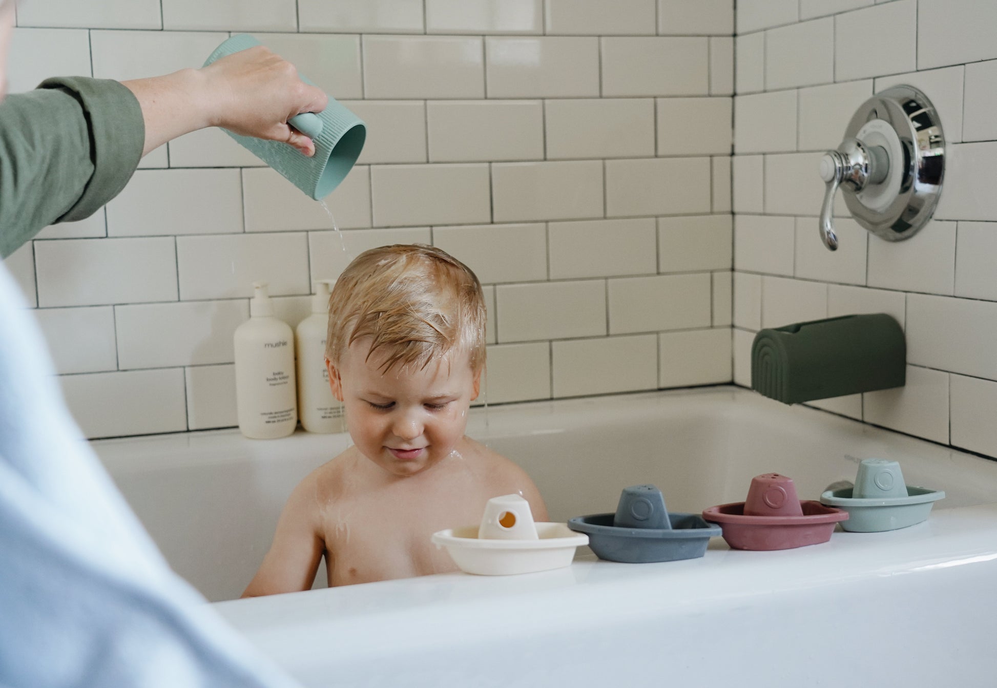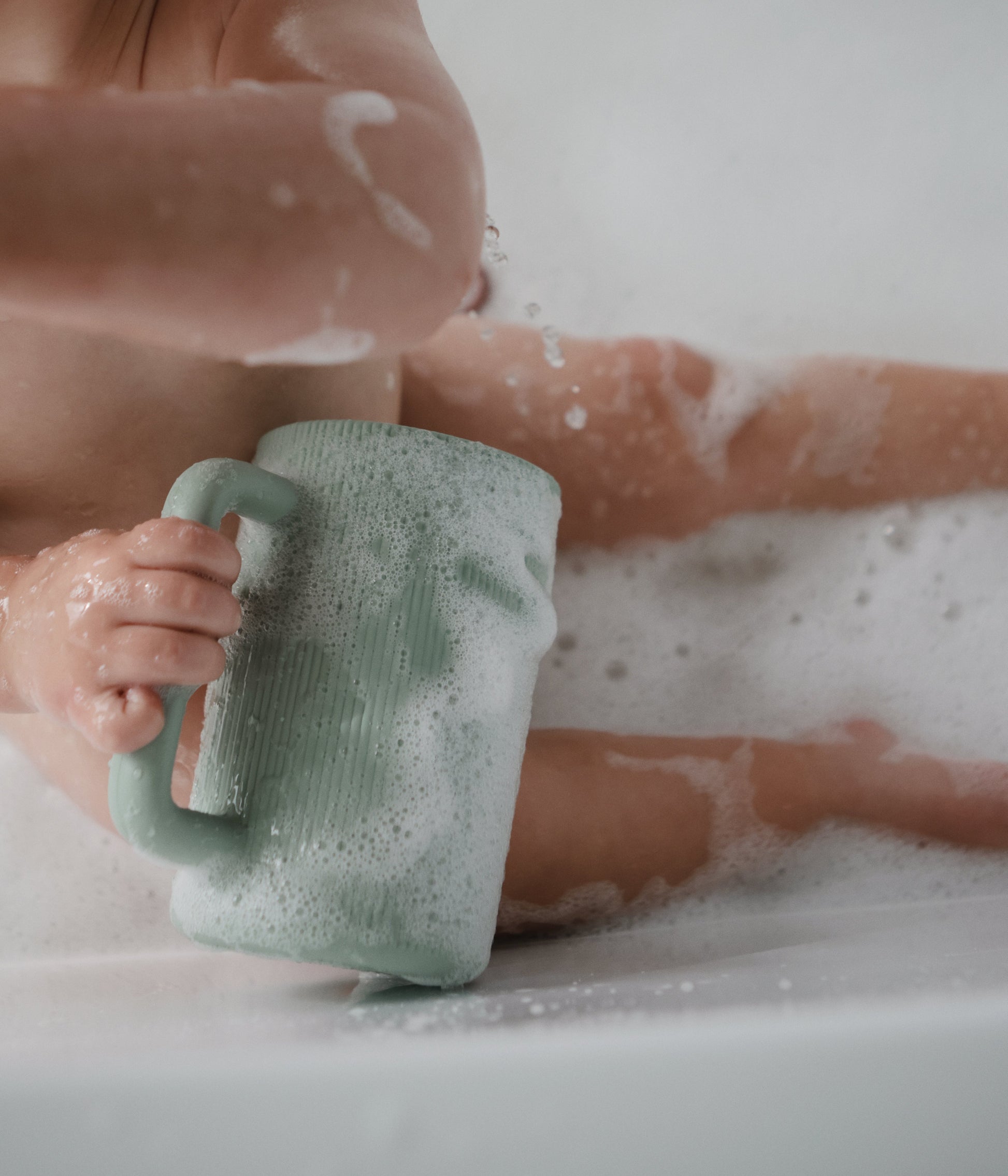 Transform your evening routine with the Mushie's Bath Rinse Cup, designed to make washing away suds and bubbles a breeze.