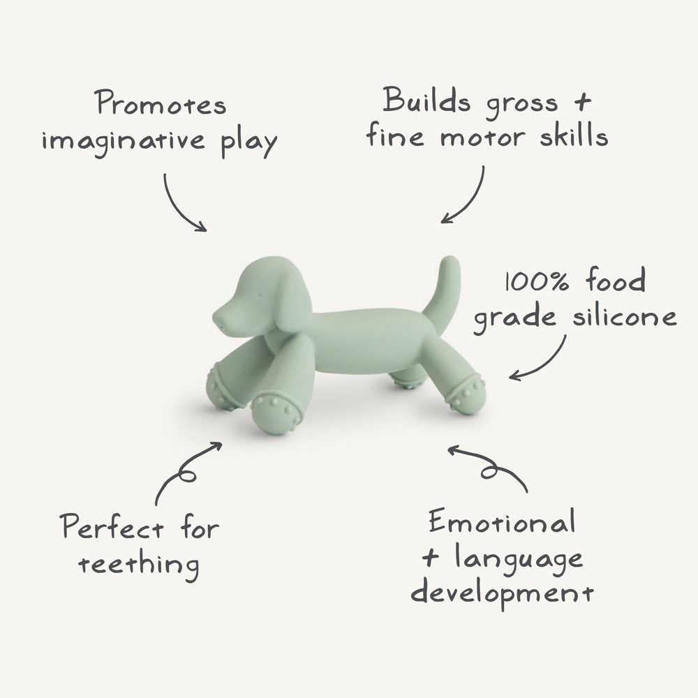 The cute little teether is made from food-grade silicone and is highly durable and easy to clean. The playful design stimulates the imagination, and the compact size makes it easy to hold for tiny hands.