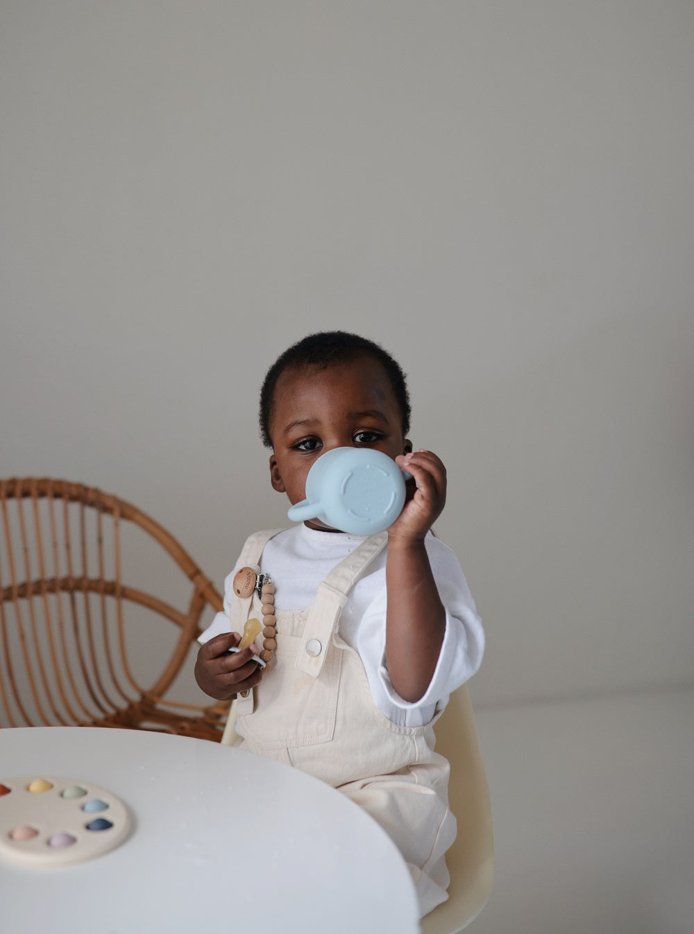 Make the transition from baby bottle to cup much easier with a Training Cup + Straw from Mushie. It is designed for little hands to hold while building up fine motor skills and fits elegantly into any modern home.