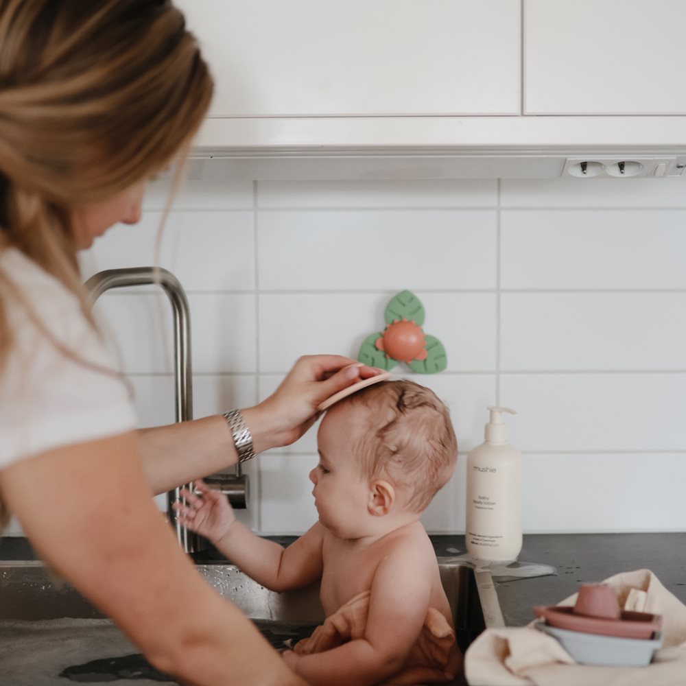 The toy is made from plastic and food-grade silicone and is designed to create sensory experiences for children. It also has a suction feature that ensures the spinner toy stays in place – this prevents accidental drops and encourages independent play. Try the suction feature on doors, chairs, in the bathtub etc.