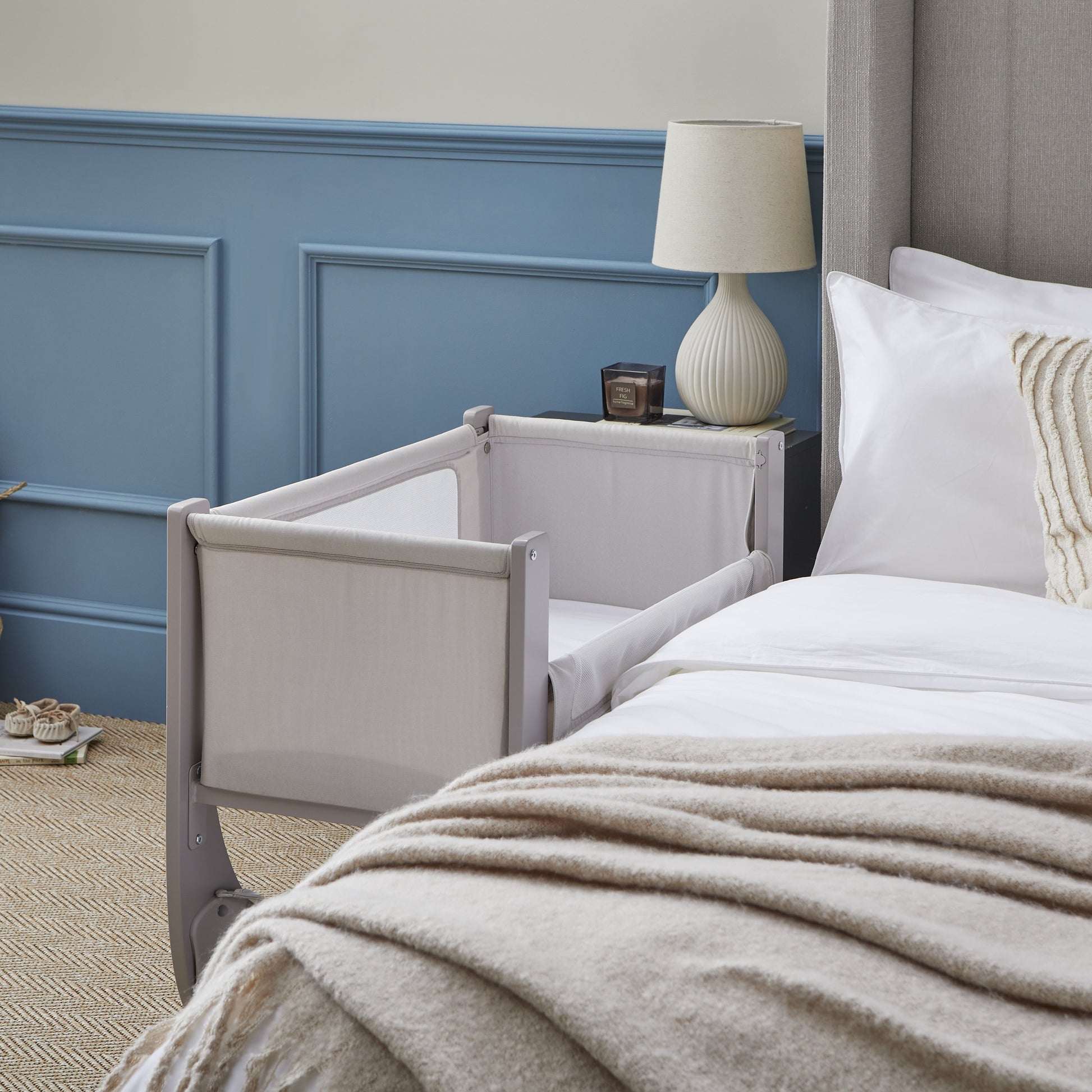 Assurance – tested to latest bedside crib safety standard and designed for maximum airflow and breathability. The rigid low level safety wall allowing the side to remain lowered for safe bedside sleeping.